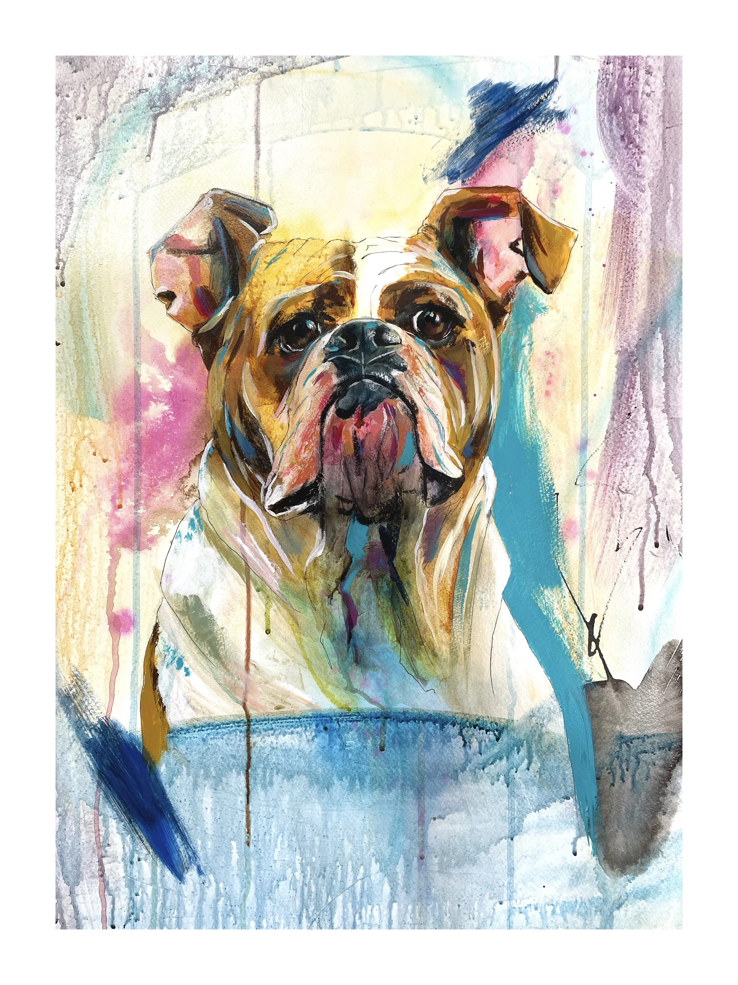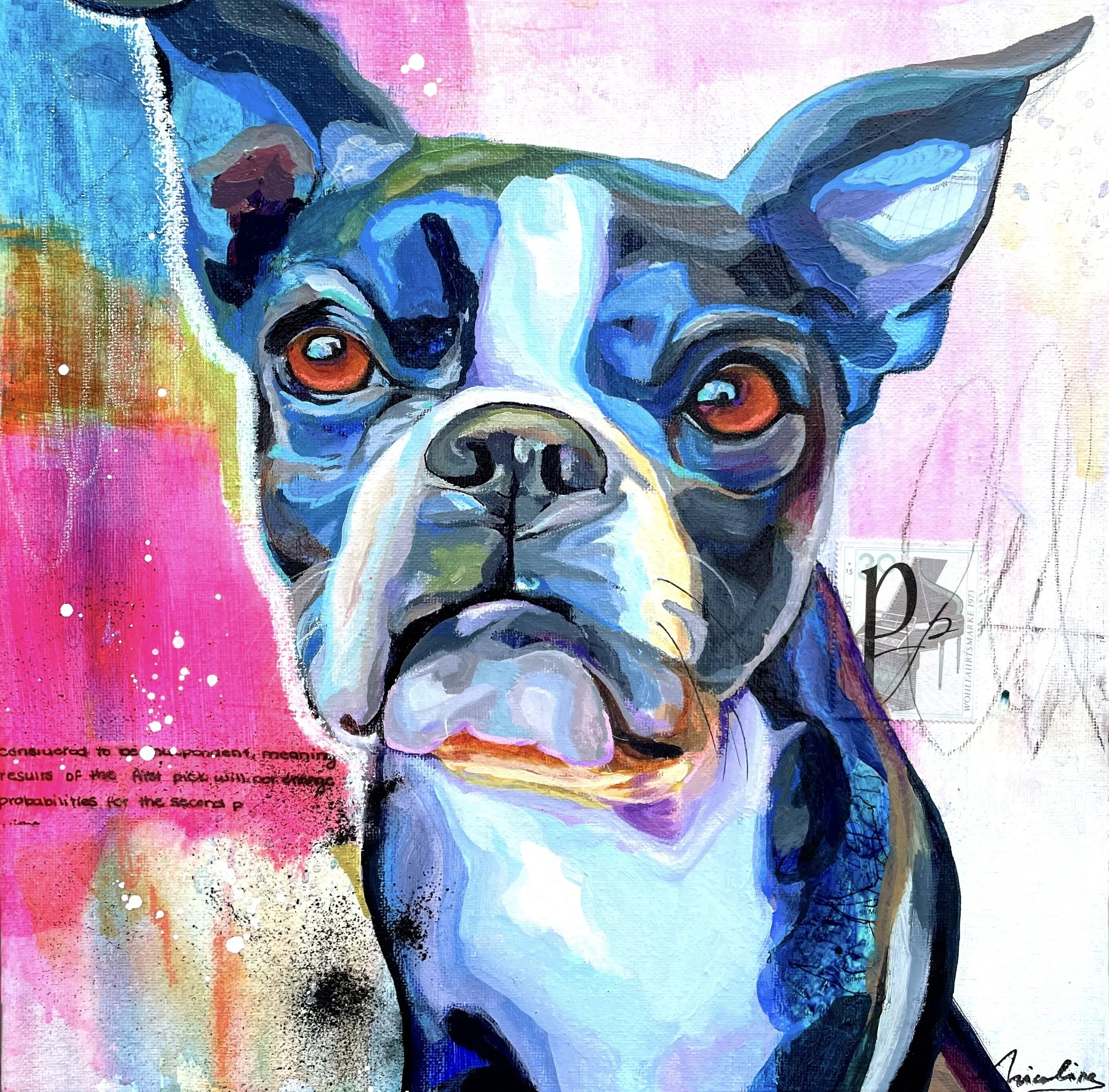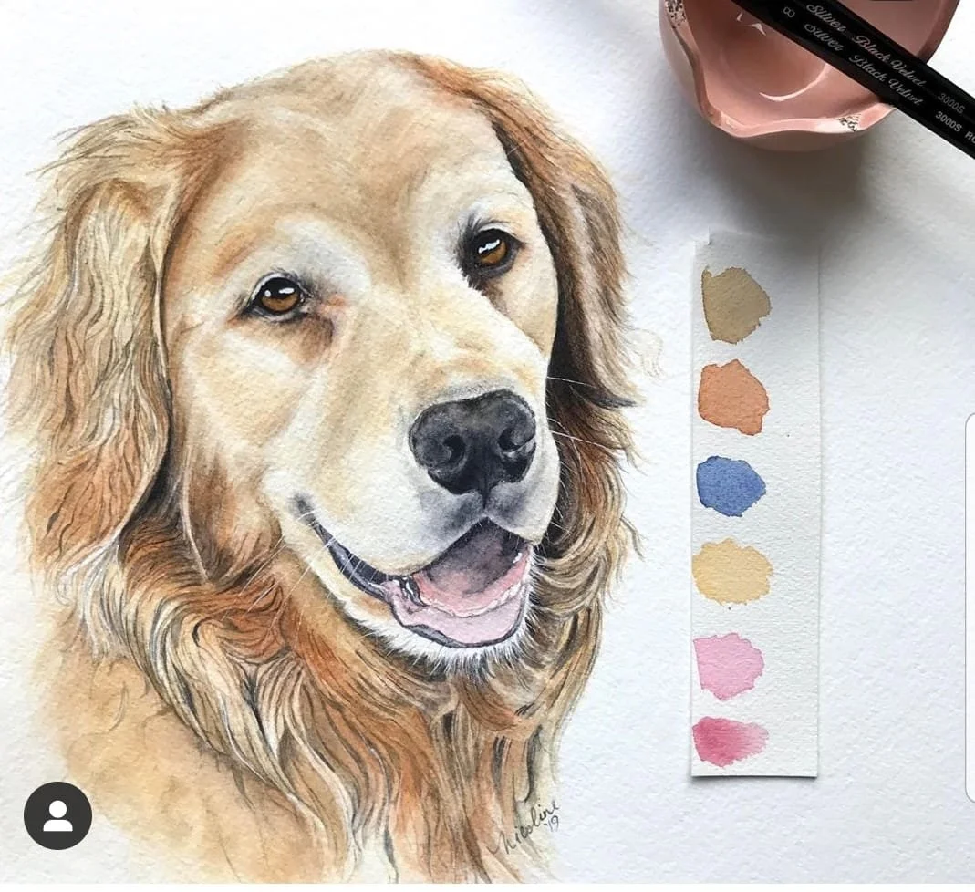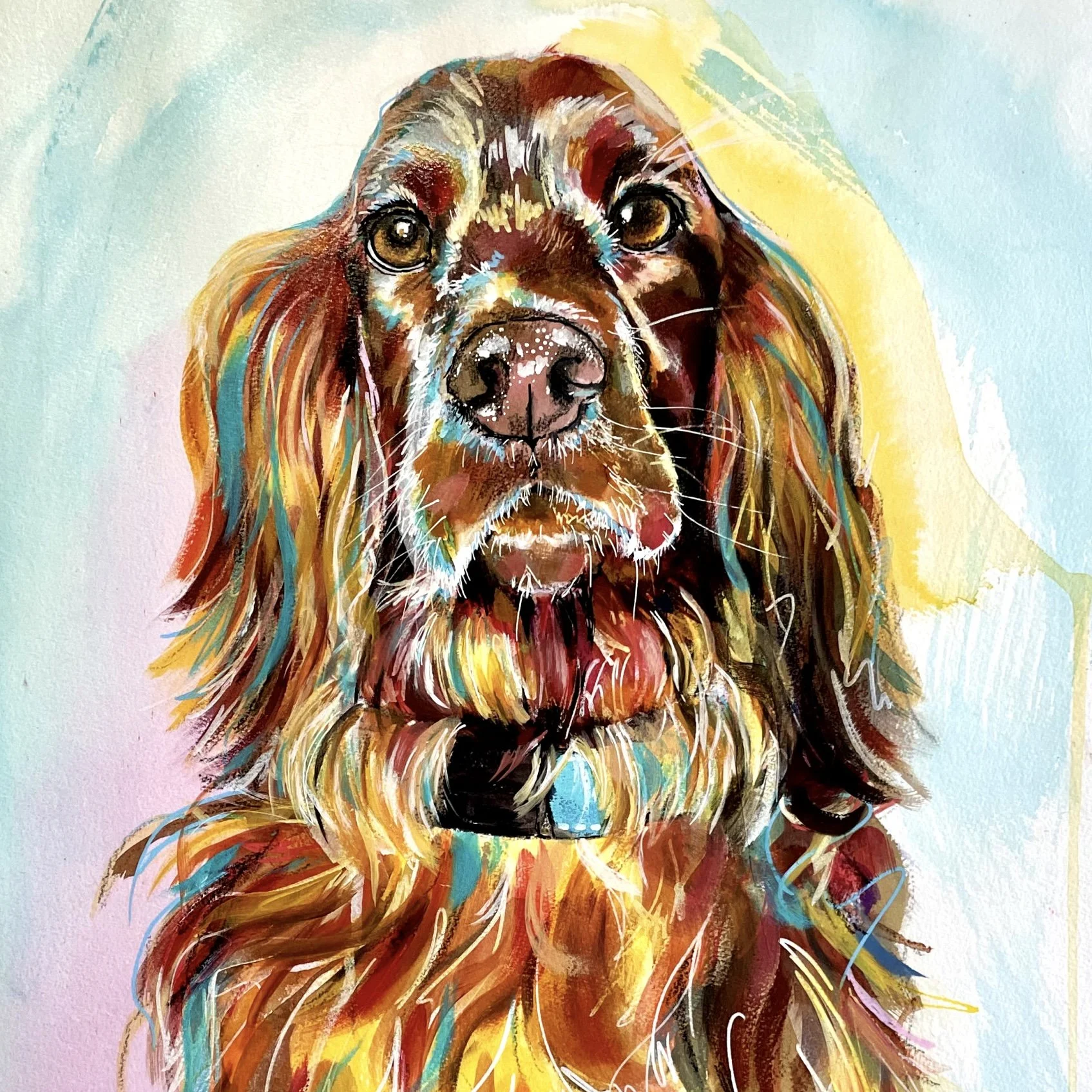 The process starts when you reach out to inquire about a pet portrait. I’ll ask you to send several photos of your pet—clear, well-lit images taken at the pet’s eye level work best. From there, I’ll choose the best photo(s) with your input, and we’ll discuss the size of the painting. While we finalize the details, I love learning about your pet—what makes them special, their quirks, their story, and what you love most about them. This personal touch helps bring their unique personality into the artwork.